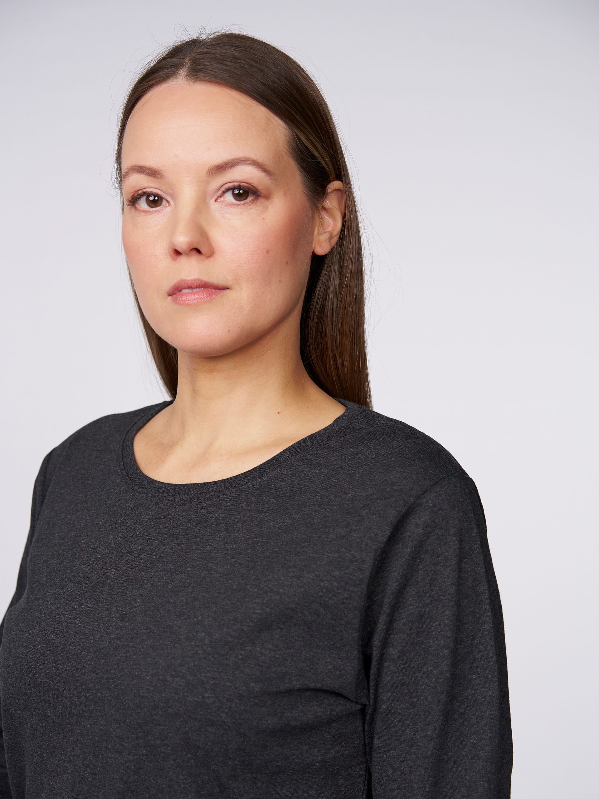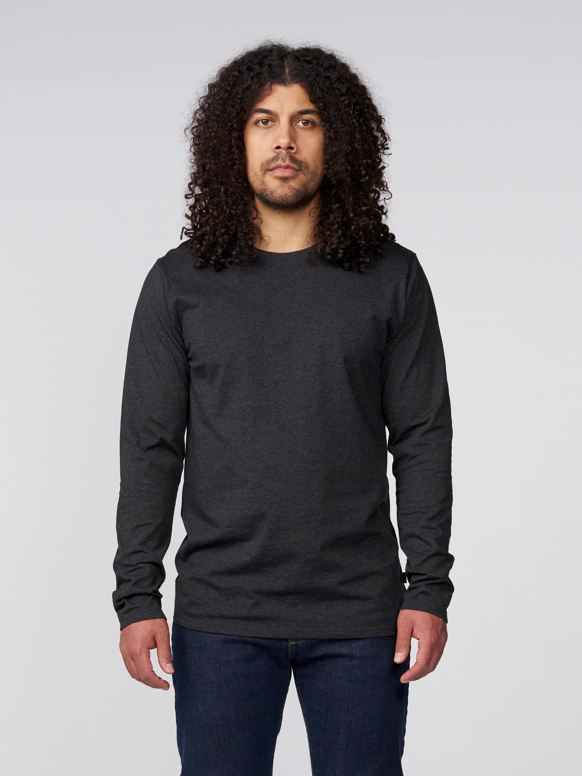 The Pure Waste long sleeve T-shirt is made from recycled cotton and polyester from recycled plastic bottles. This T-shirt is designed to last. It has a straight cut and a low hem. The rib around the neck opening is narrow.