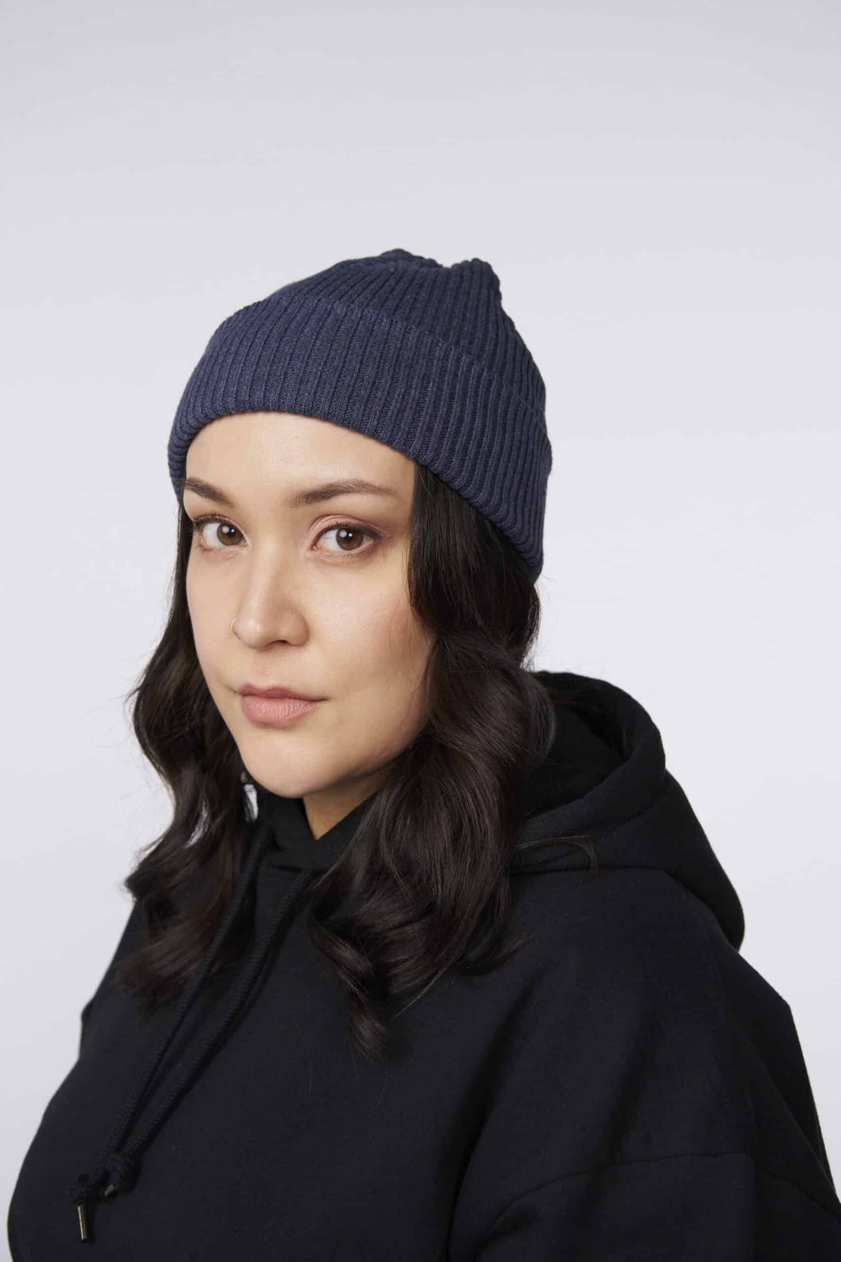 Compared to an equivalent product made from virgin materials, beanies from recycled materials use 99% less water and generate 50% fewer CO2 emissions.